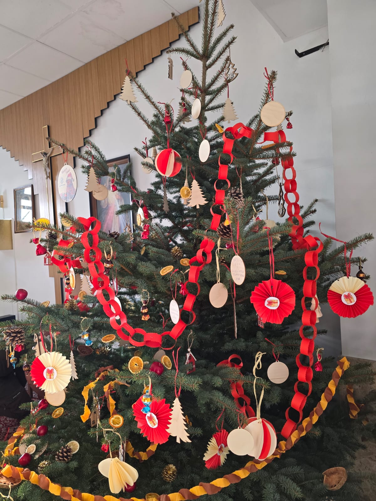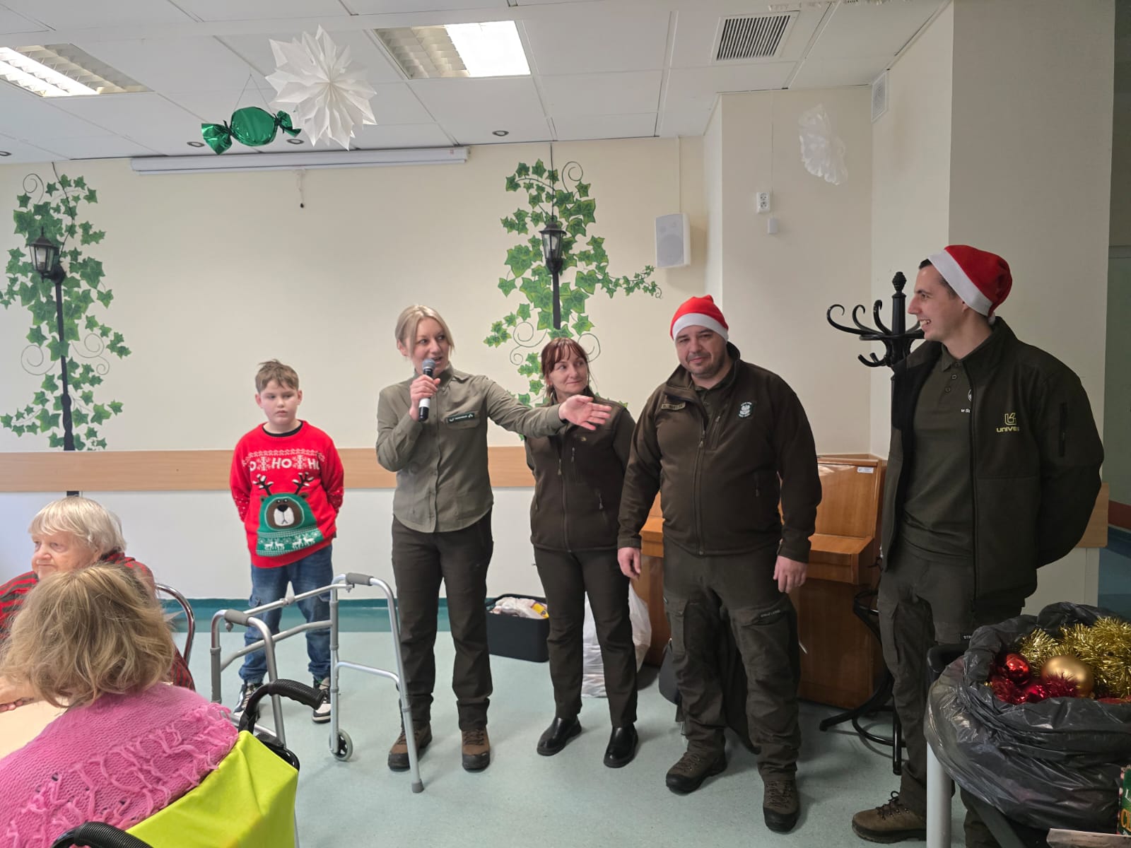 Od wielu lat Nadleśnictwo Gryfino-Puszcza Bukowa wspiera nas sprawiając, że święta są u nas naprawdę magiczne i pełne zapachu lasu. Obdarowując nas mnóstwem pachnących choinek, które zdobią korytarze DPS sprawiają naszym Mieszkańcom mnóstwo radości. W tym roku nasza współpraca jest jednak szczególnie wyjątkowa bo oprócz podarowanych choinek Nadleśnictwo Gryfino zorganizowało u nas warsztaty tworzenia ozdób choinkowych z dawnych lat. Leśniczy przywieźli nam przepiękną choinkę, która początkowo miała stanąć na jednym z korytarzy DPS, jednak okazała się tak duża i wyjątkowa, że znalazła swoje miejsce w naszej kaplicy. Podczas warsztatów rozmawialiśmy o tym, jak kiedyś obchodziliśmy święta, z czym kojarzy nam się Boże Narodzenie, jak wyglądały przygotowania do świąt w dzieciństwie Mieszkańców DPS. Były rozmowy o życiu, tradycjach, mnóstwo radości i śmiechu, ale też chwile wzruszeń. Leśniczy wspólnie z Mieszkańcami, pracownikami DPS oraz dziećmi pracowników stworzyli piękne ozdoby, które zawisły na choince. Na drzewku zawisły również naturalne ozdoby takie które kiedyś zdobiły większość polskich domów. Efekt? Piękny i magiczny. Z całego serca dziękujemy całej kadrze Nadleśnictwa Gryfino za wieloletnią życzliwość i tworzenie z nami świątecznej atmosfery.