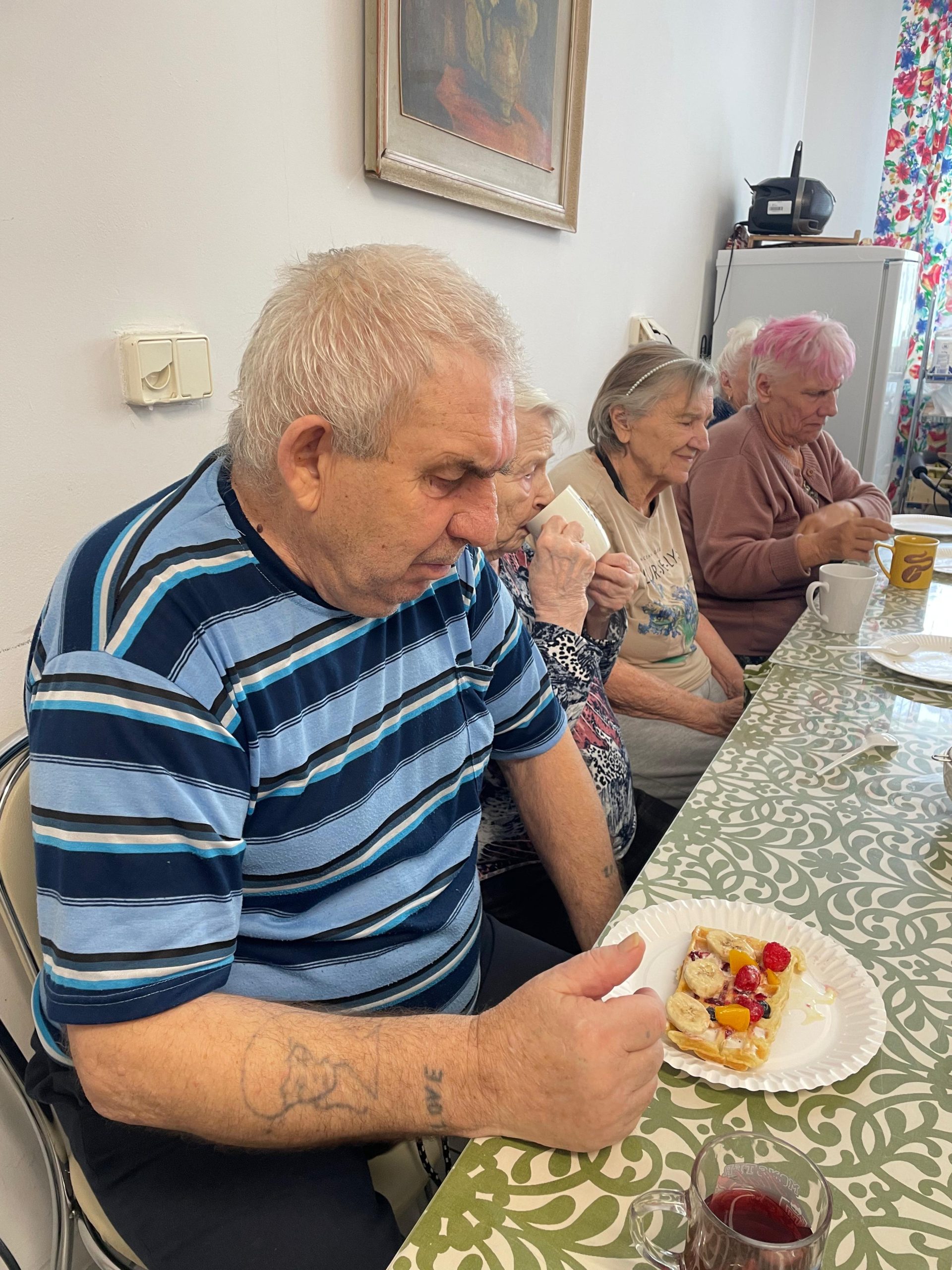 Na ostatnich zajęciach kulinarnych było pysznie i radośnie. Tym razem Mieszkańcy z pomocą Pracowników przygotowali chrupiące, złociste gofry z rozmaitymi dodatkami. Każdy mógł skomponować swojego idealnego gofra. Prawdziwym hitem okazała się jednak fontanna do czekoladowego founde, którą przyniosła terapeutka Magdalena. W płynnej, ciepłej czekoladzie maczaliśmy owoce, które znikały w mgnieniu oka. Zajęcia kulinarne integrują Mieszkańców i wywołują uśmiech, tworząc przy tym piękne wspomnienia. Już nie możemy doczekać się kolejnych kulinarnych uniesień.