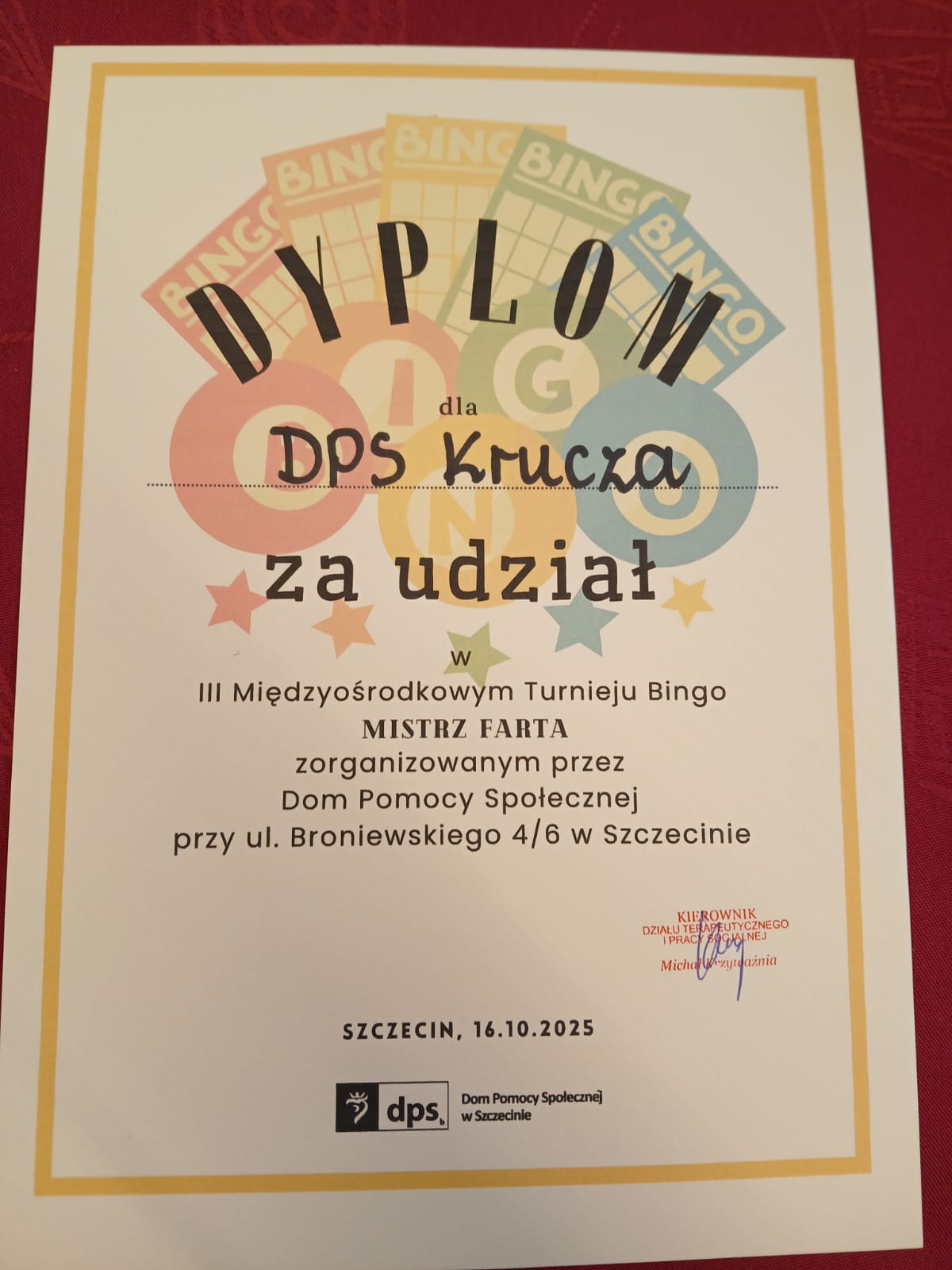 Naszej Mieszkance Pani Jadzi udało się zdobyć nagrodę indywidualną, a drużyna otrzymała piękny pamiątkowy dyplom za udział.