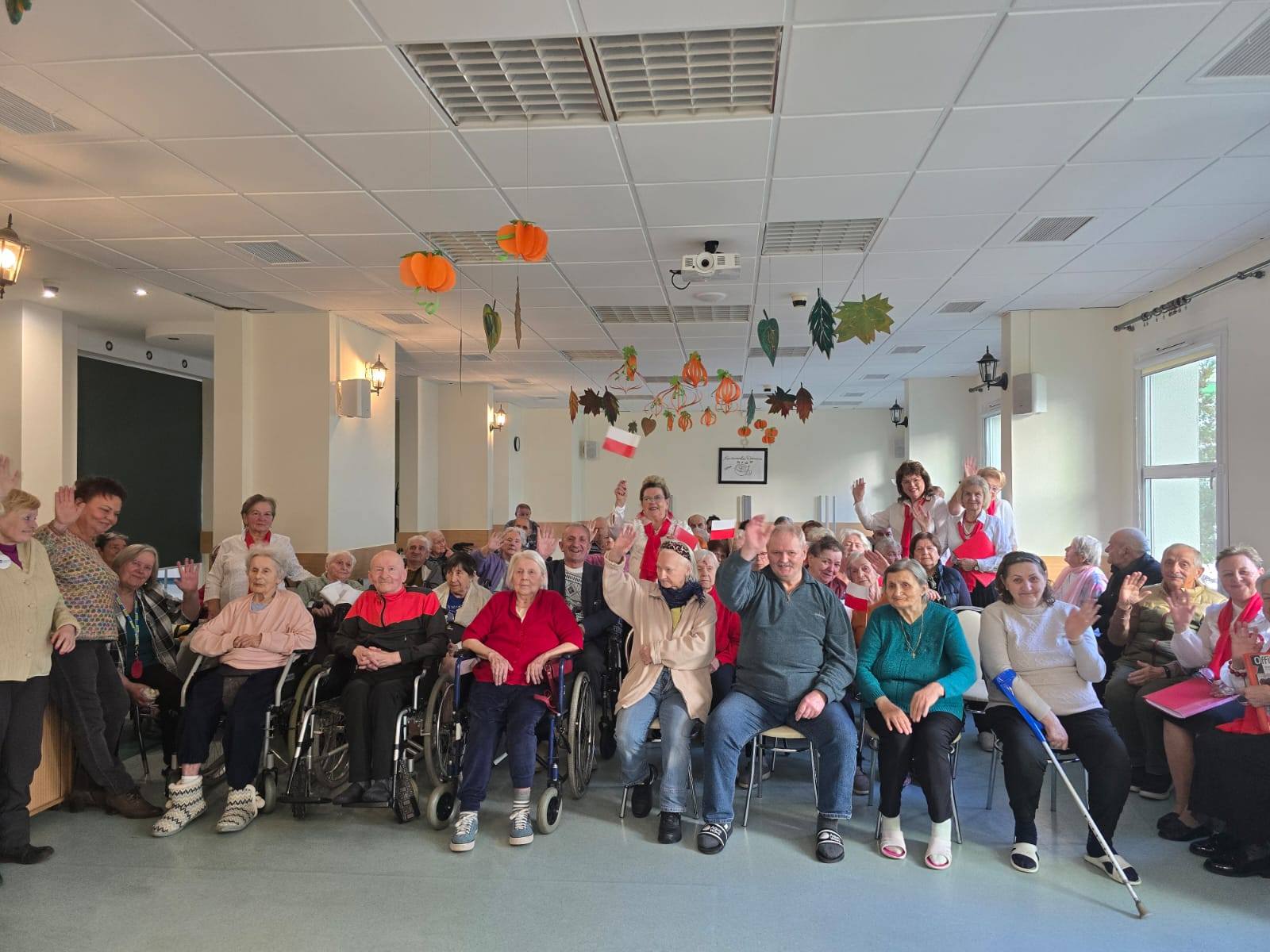 Z koncertem piosenek patriotycznych zawitał do nas zespół „Ale Babki”. Mieszkańcy DPS i Uczestnicy DWD ochoczo włączyli się do wspólnego śpiewania na koniec wolontariuszki z Centrum Seniora wręczyły wszystkim ręcznie robione mięciutkie poduszeczki, którym wszystkim bardzo się spodobały. Serdecznie dziękujemy!