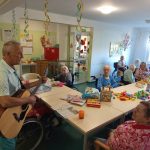 Muzykoterapeuta Jacek – ze swą nieodłączną gitarą – odwiedził dzisiaj Mieszkańców naszego Domu i zachęcił Ich do wspólnego śpiewu i klaskania w rytm melodii. Znane i lubiane utwory, takie jak „Gdybym miał gitarę” i inne wesołe piosenki podniosły nastrój i przywołały uśmiech na twarzach wszystkich Uczestników muzykoterapii.
