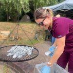 Muzyczną oprawę ogniska zapewnił jak zawsze nasz muzykoterapeuta Jacek, który nie tylko zagrał nam na gitarze, ale tez razem z uczestnikami ogniska śpiewał ich ulubione piosenki 🎶 Nie zabrakło również smakołyków! Zjedliśmy pieczone udziki, kaszankę i kiszkę zajadając się przy tym pyszną sałatką- palce lizać.