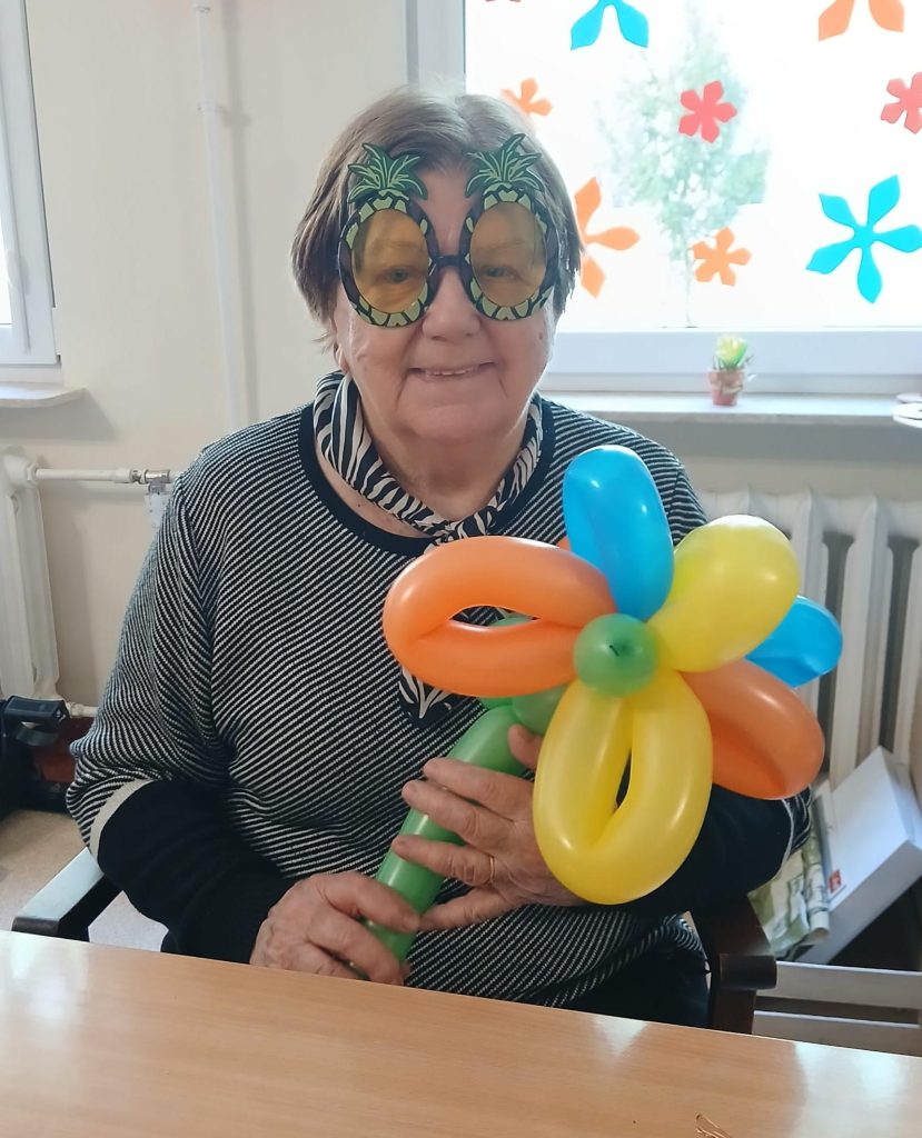 Na zakończenie spotkania wyróżniający się aktywnością Uczestnicy, Pani Basia i Pan Mieczysław, otrzymali nagrody – egzotyczne, balonowe kwiaty.