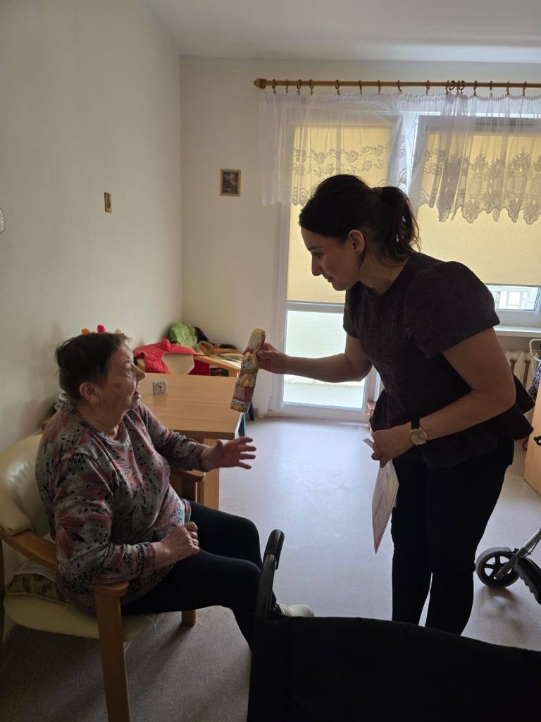Wizyta naszych pracownic spotkała się z bardzo ciepłym przyjęciem– Mieszkańcy nie kryli radości i wzruszenia. Szczególnie dużo uśmiechu wywołały słodkie zajączki, które stały się symbolem nadchodzących świąt i drobnym, ale jakże miłym gestem pamięci.