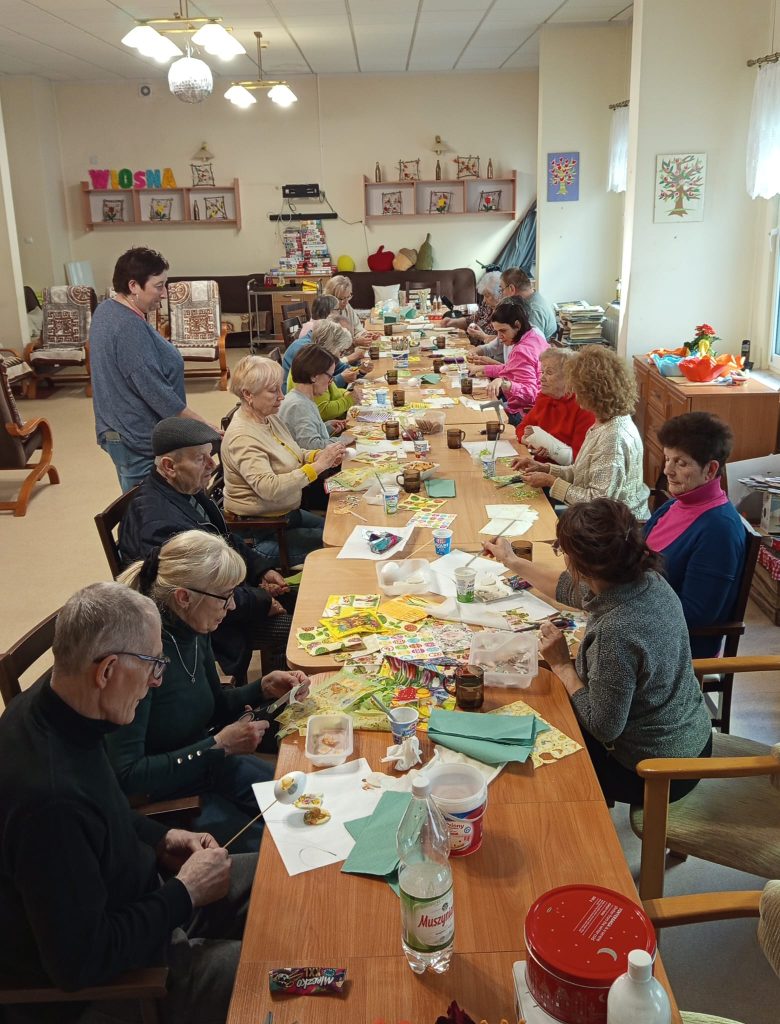 W ubiegłym tygodniu w Dziale Wsparcia Dziennego odbyły się warsztaty plastyczne związane z tematyką Świąt Wielkanocnych dla osób chorujących otępiennie i ich opiekunów. Uczestnicy warsztatów integrowali się wykonując wspólnie ozdoby wielkanocne.