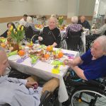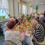W dniu 20 kwietnia br. w DPS odbyło się uroczyste śniadanie wielkanocne dla Mieszkańców i ich rodzin. Kapelan DPS udzielił Mieszkańcom błogosławieństwa, a Zastępca Dyrektora Pani Monika Pilarska złożyła wszystkim zebranym życzenia i zaprosiła do wspólnego, wielkanocnego stołu.