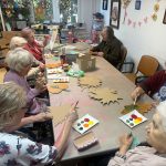 Terapeutka Marta zaprosiła dzisiaj nasze Mieszkanki do wspólnego malowania liści, które wkrótce ozdobią nasze korytarze.