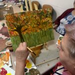 Dodatkowo jedna z naszych Mieszkanek namalowała obraz jesiennych drzew. Słuchając muzyki relaksacyjnej i pijąc kawkę Mieszkanki relaksowały się tworząc prawdziwe dzieła sztuki.