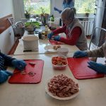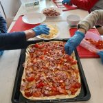 Wczorajsze zajęcia kulinoterapii w Dziale Wsparcia Dziennego obfitowały w siekanie, krojenie i układanie. Terapeutka Marcelina wraz z Uczestniczkami przygotowywały pizzę. Po całym dziale unosił się smakowity zapach.