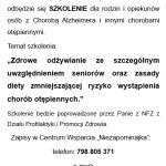 Serdecznie zapraszamy na szkolenie pn. „Zdrowe odżywianie ze szczególnym uwzględnieniem seniorów oraz zasady diety zmniejszającej ryzyko wystąpienia chorób otępiennych”.